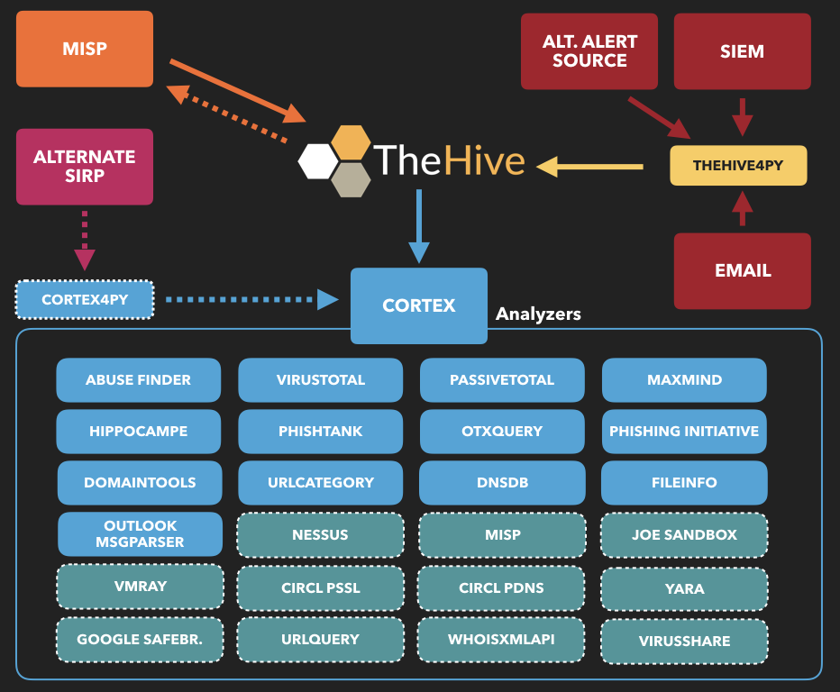 - Cortex는 TheHive와 통합되어 자동화된 보안 작업을 지원합니다. Cortex를 설치하고 구성하여 TheHive와의 통합을 활성화할 수 있습니다.