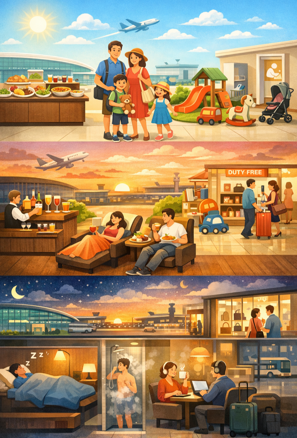 | 시간대 | 최적 라운지 | 추천 전략 | 가족동반 핵심 |